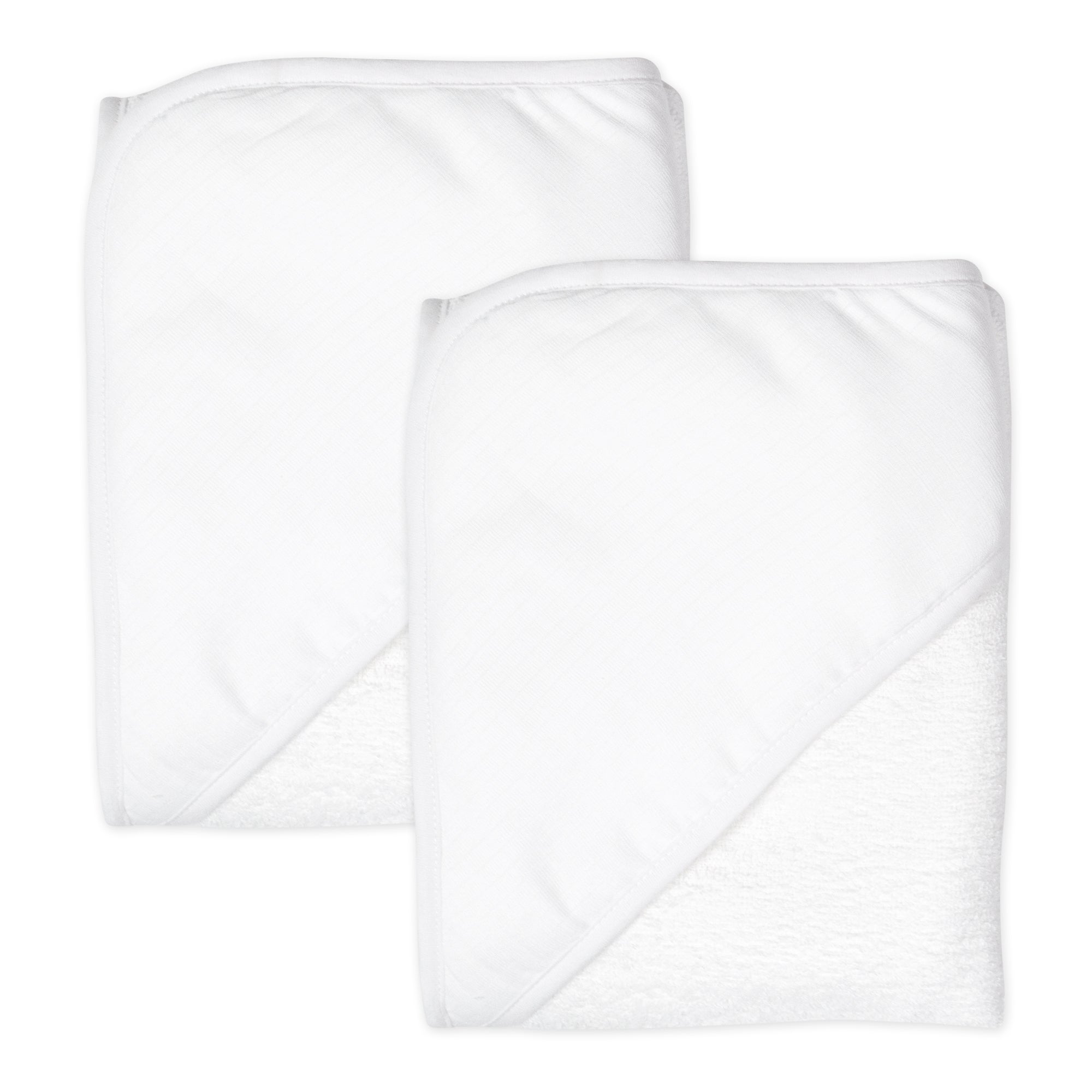Our extra plush and 100% organic cotton hooded towels are the perfect addition to any registry! Made for cozy cuddles after baby's bath time, double-sided fabric with single-ply cotton terry on one side and soft muslin gauze on the other feature a clean edge jersey trim. The hood keeps baby covered and the absorbent fabric keeps them warm and dry. Available in a convenient 2-pack, these towels are designed to make bath time easy and fun.