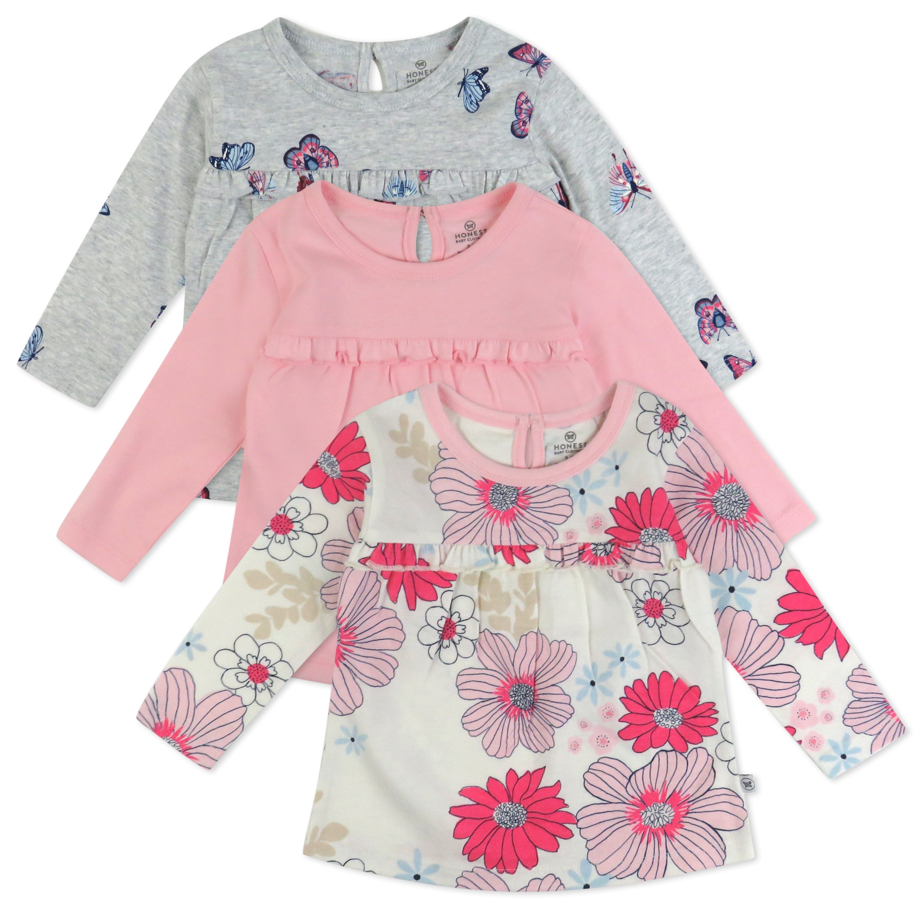 This 3-pack of babydoll tops adds fashionable versatility to your little one's wardrobe. So fun to mix & match! Featuring gathers at the front and a super-comfy fit, these tops will be your go-to this season. Crafted from the softest organic cotton and made for all day play.