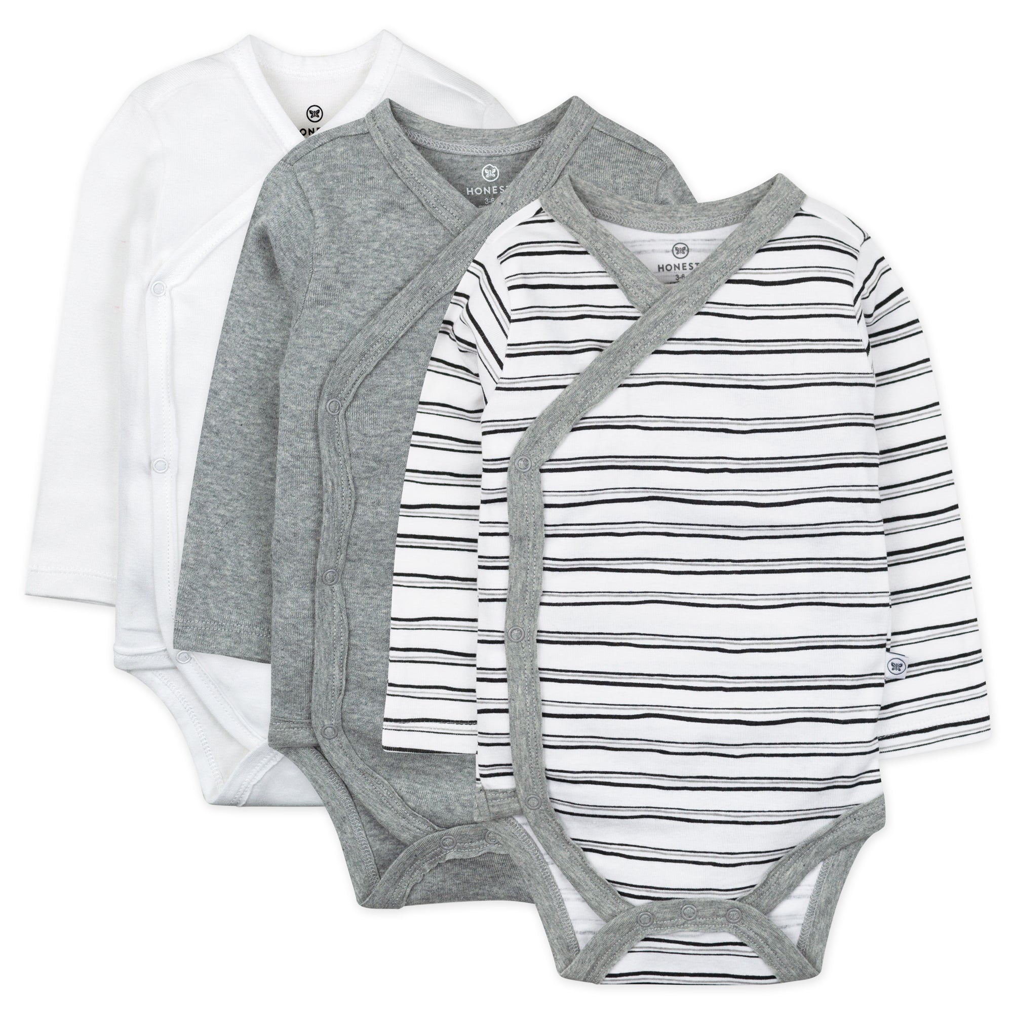 Our clever side-snap bodysuits are super functional. Crafted from soft, breathable 100% organic cotton, this bodysuit features a comfy wrap closure and side snaps, allowing for quick diaper changes. Available in a 3-pack, this soft bodysuit has long sleeves with convenient fold-over cuffs to protect baby from little fingernail scratches. Wrap your baby in luxe style with friendly features you will love.