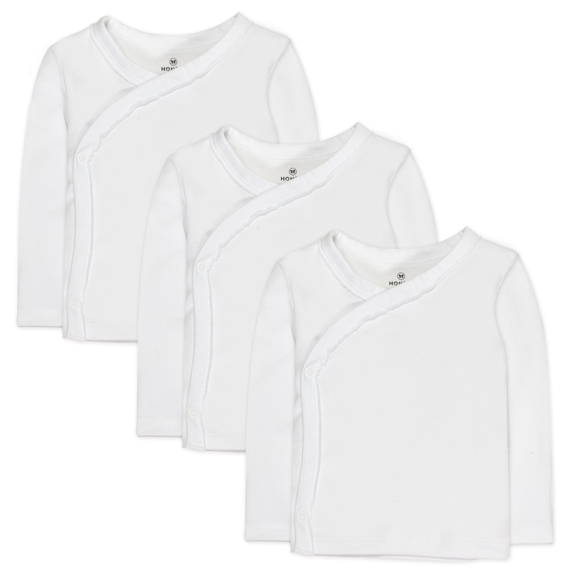 Our clever side-snap style tops are super functional. Crafted from soft, breathable 100% organic cotton, this top features a comfy wrap closure and side snaps, allowing for quick diaper changes. Available in a 3-pack, our soft side-snap top has long sleeves with convenient fold-over cuffs to protect baby from little fingernail scratches. Wrap your baby in luxe style with friendly features you will love.
