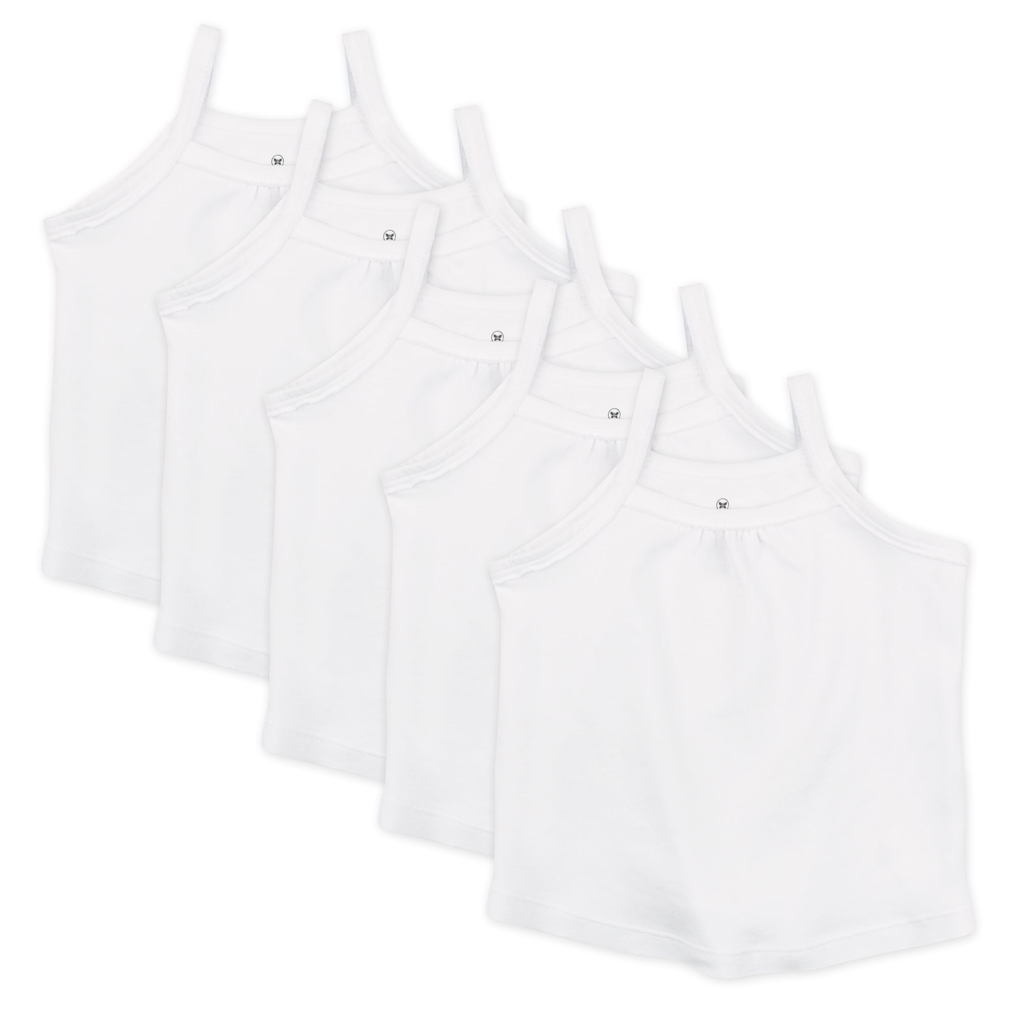 These sweet cami tops with straps that stay put at the shoulders and gathers in the front keep babies cool. Made from 100% organic cotton, our camis have a comfy-fit and are great for layering. This cami 5-pack is available in a variety of colors and prints. It's a must-have all year long.