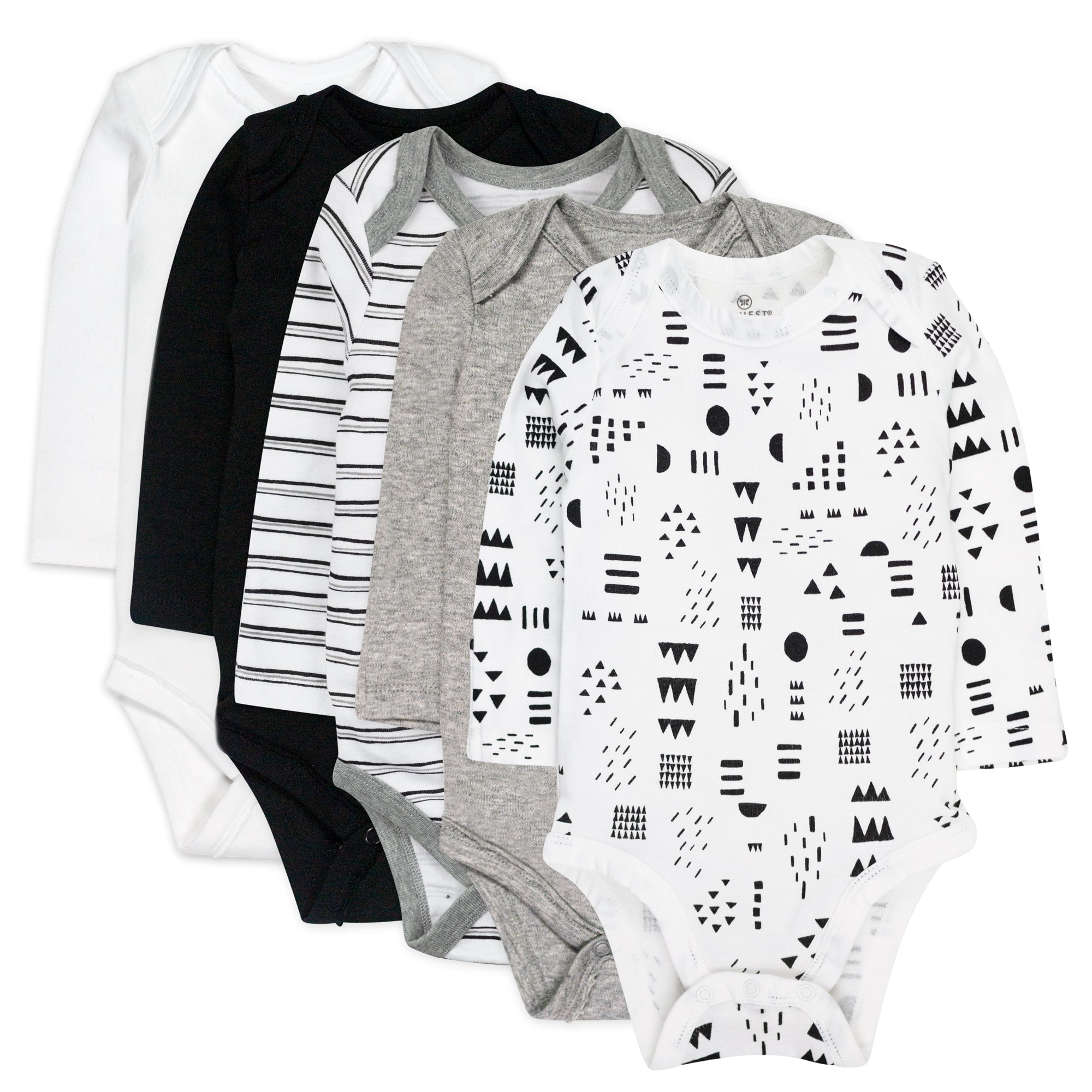 Long sleeve bodysuits are must-haves for babies. Available in a convenient 5-pack, our soft bodysuit has long sleeves to keep baby comfy and cozy all day long. An envelope neck that expands and nickel-free snaps at the bottom make dressing easier and changes quick. Made from 100% organic cotton, this short-sleeve bodysuit is just right to wear on its own or layered for super-cute styles.