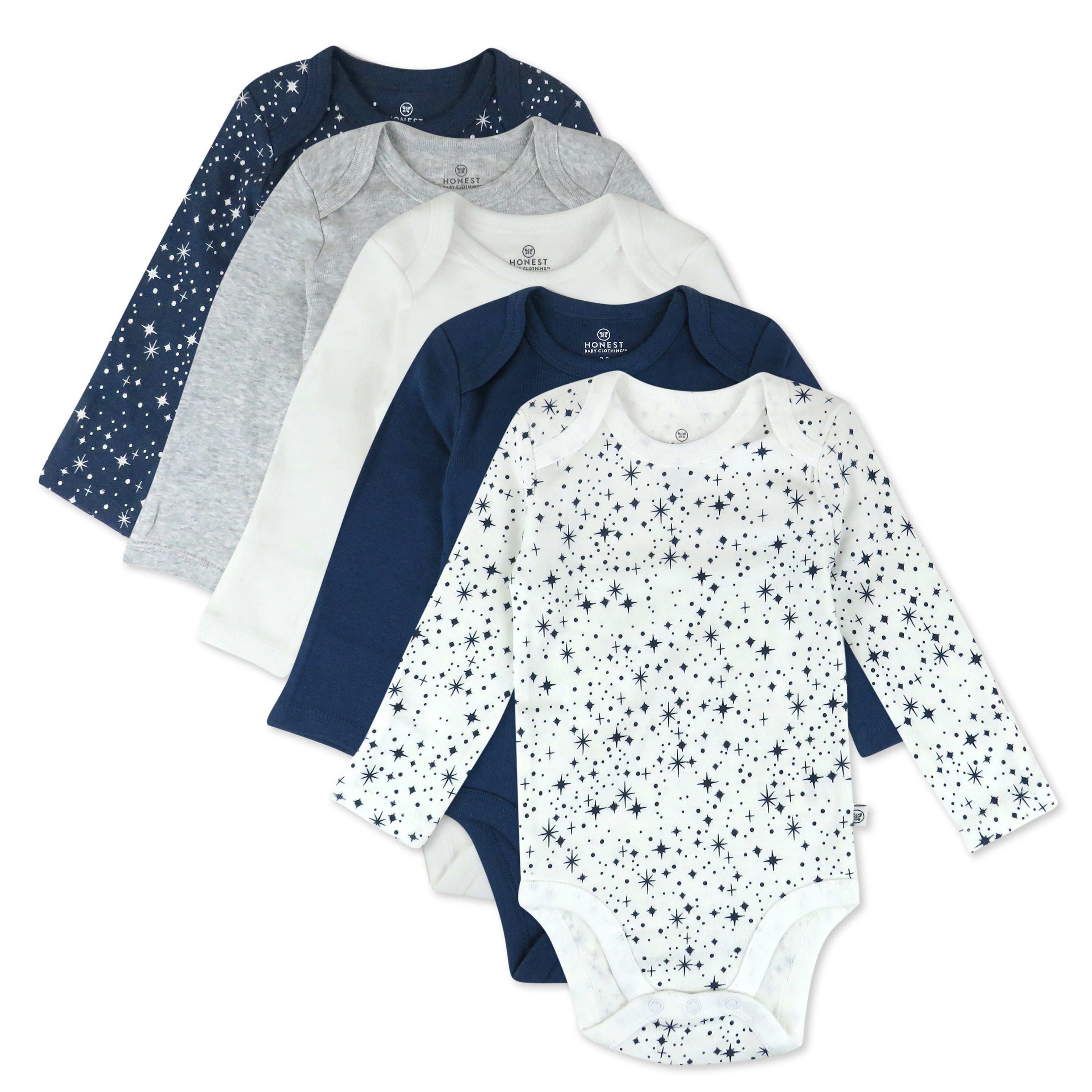 Long sleeve bodysuits are must-haves for babies. Available in a convenient 5-pack, our soft bodysuit has long sleeves to keep baby comfy and cozy all day long. An envelope neck that expands and nickel-free snaps at the bottom make dressing easier and changes quick. Made from 100% organic cotton, this short-sleeve bodysuit is just right to wear on its own or layered for super-cute styles.