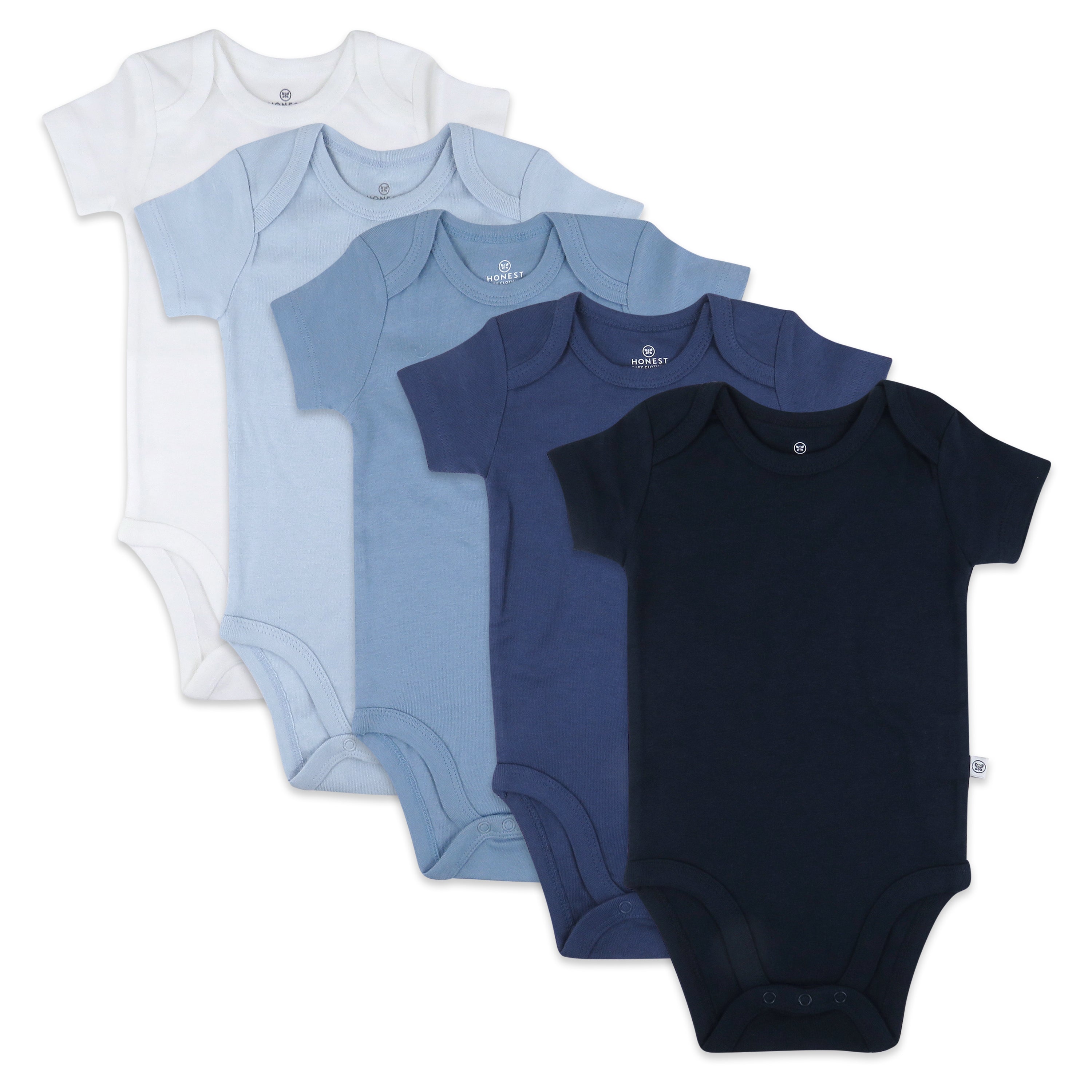 Short sleeve bodysuits are the baby essentials you can't do without. Available in an assorted 5-pack, our comfy bodysuit has an envelope neck that expands and nickel-free snaps at the bottom to make it easy to get on and off. Made from 100% organic cotton, this short-sleeve bodysuit is just right to wear on its own or layered for super-cute styles.