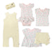 This 6-piece bundle includes all the essentials you need to create endless outfits all season long! Crafted from organic cotton, this set includes a bodysuit dress, ruffle tank tee, bloomer shorts, coverall, short sleeve top, and a headband (with elastane for stretch). Each style is designed with thoughtful features that make dressing effortless and changes quick. So fun to mix + match and makes a great gift too!