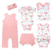 This 6-piece bundle includes all the essentials you need to create endless outfits all season long! Crafted from 100% organic cotton, this set includes a bodysuit dress, tank top, bloomer shorts, coverall, tee, and a headband. Each style is designed with thoughtful features that make dressing effortless and changes quick. So fun to mix + match and makes a great gift too!