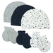 This cap + mitt set is perfect for newborns. These adorable caps are super-comfy and keep baby warm and cozy. The mitts are designed to protect baby from scratching and feature comfy elastic to keep them in place without being too tight. Crafted from 100% organic cotton, this set makes a great gift too.