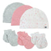 This cap + mitt set is perfect for newborns. These adorable caps are super-comfy and keep baby warm and cozy. The mitts are designed to protect baby from scratching and feature comfy elastic to keep them in place without being too tight. Crafted from 100% organic cotton, this set makes a great gift too.