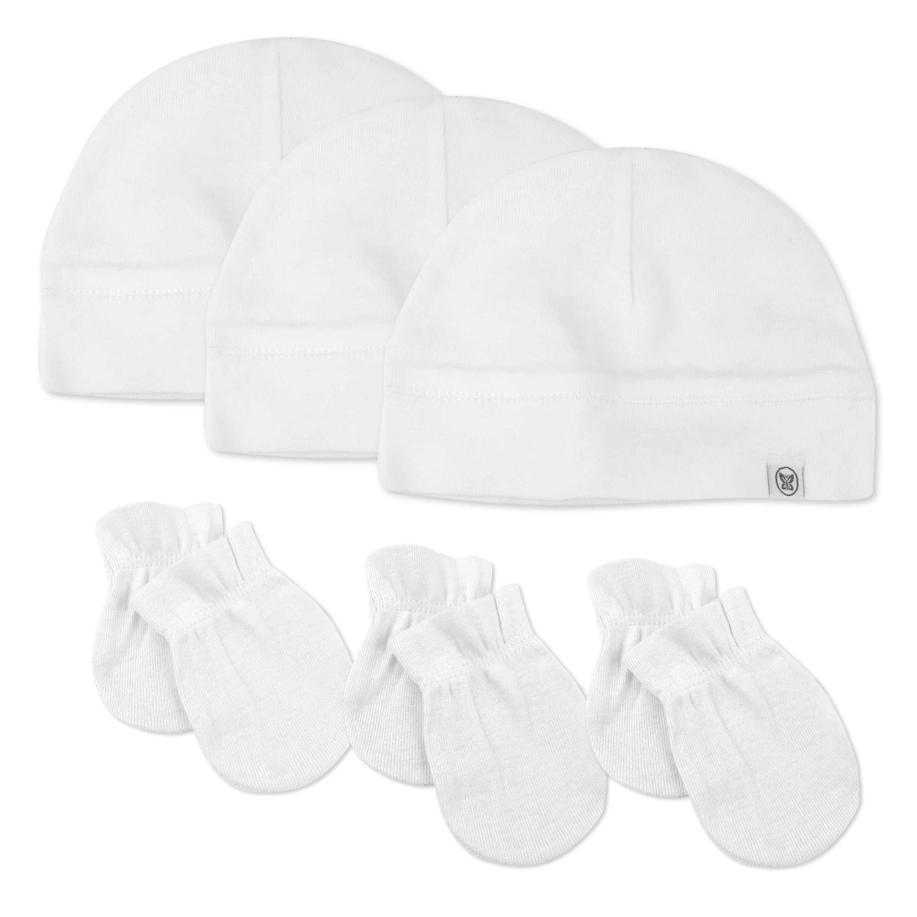 This cap + mitt set is perfect for newborns. These adorable caps are super-comfy and keep baby warm and cozy. The mitts are designed to protect baby from scratching and feature comfy elastic to keep them in place without being too tight. Crafted from 100% organic cotton, this set makes a great gift too.