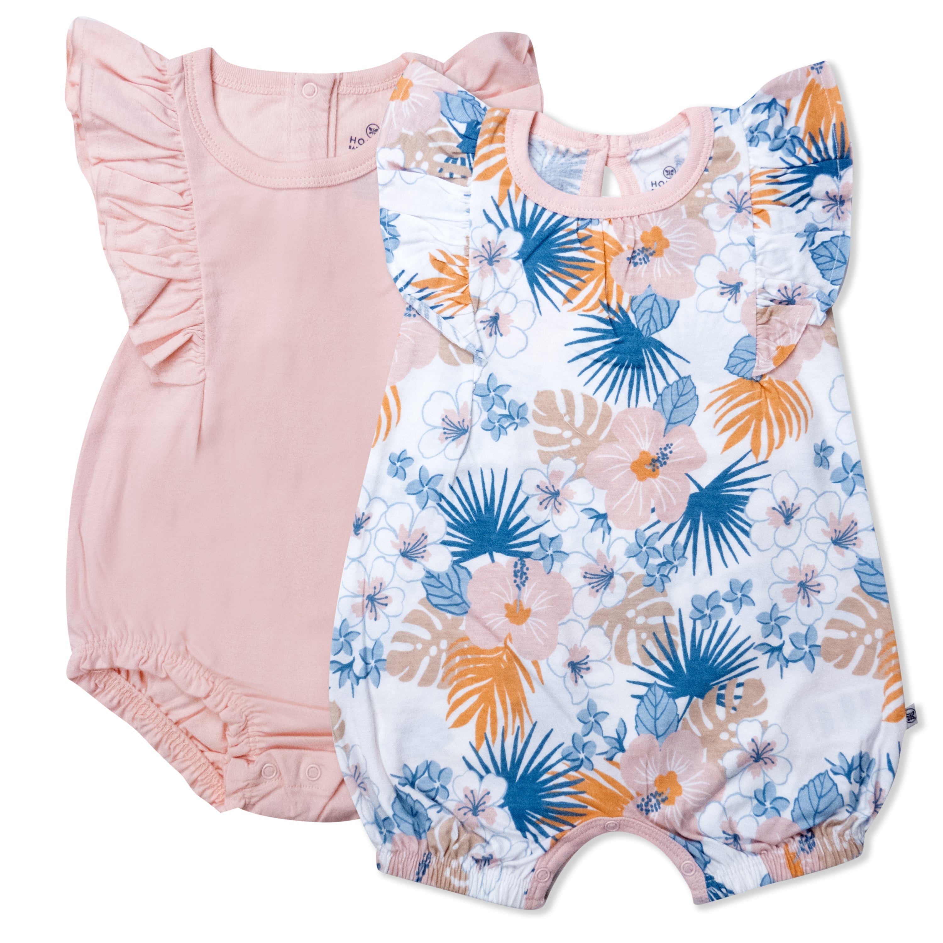The only thing better than one super-cute romper is two. These easy breezy one-piece outfits keep babies cool in soft and breathable 100% organic cotton. This 2-pack includes two flutter sleeve style rompers. Snaps on the bottom make it easier to get on and off and a roomy bubble fit is extra comfy. Perfect for baby girls with energy to spare!