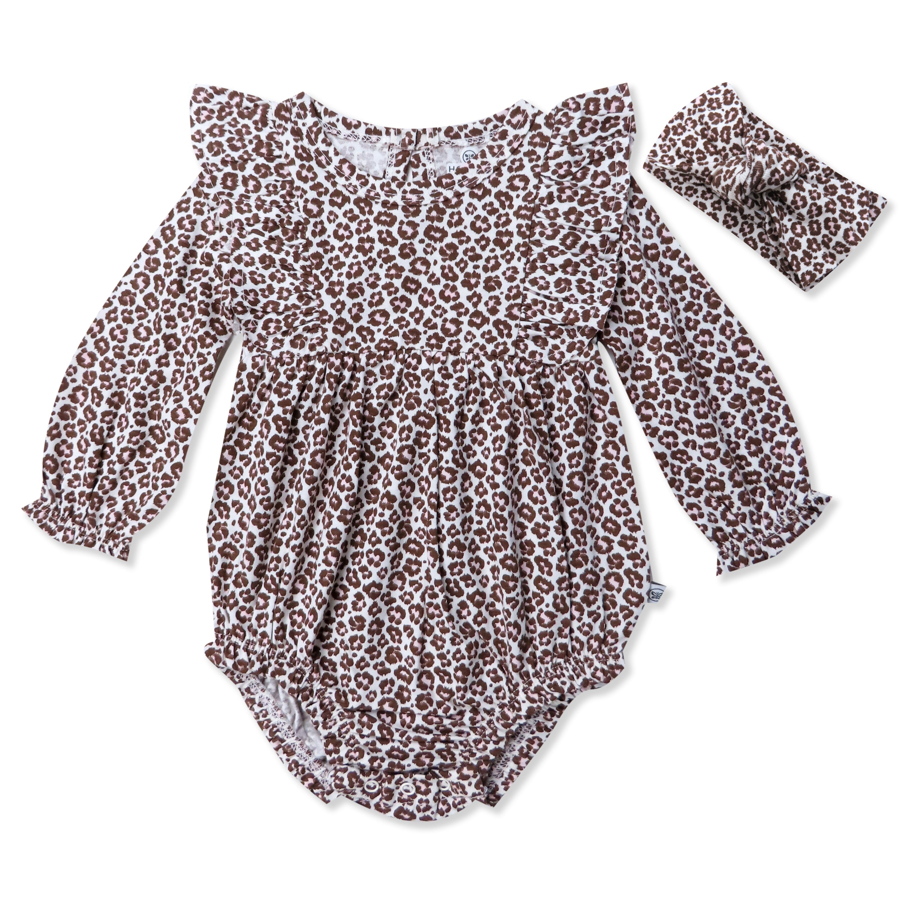 This bubble romper with ruffles at the shoulders is the cutest look for spring. This stylish one-piece outfit is comfy and cool for baby and easy for parents. Responsibly made from machine washable 100% organic cotton, this romper features nickel free snaps for easy dressing and quick changes. Top off this adorable look with our comfy-fit knotted headband. Available in adorable prints and colors, you'll want more than one. Makes a great baby gift too!