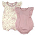 Stay adorable and cool in this 2-pack of one-piece rompers. Crafted from premium organic cotton, these rompers have ruffle sleeves and snaps at the legs for quick dressing. Easy breezy and super-cute!