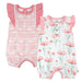 The only thing better than one super-cute romper is two. These easy breezy one-piece outfits keep babies cool in soft and breathable 100% organic cotton. This 2-pack includes two flutter sleeve style rompers. Snaps on the bottom make it easier to get on and off and a roomy bubble fit is extra comfy. Perfect for baby girls with energy to spare!