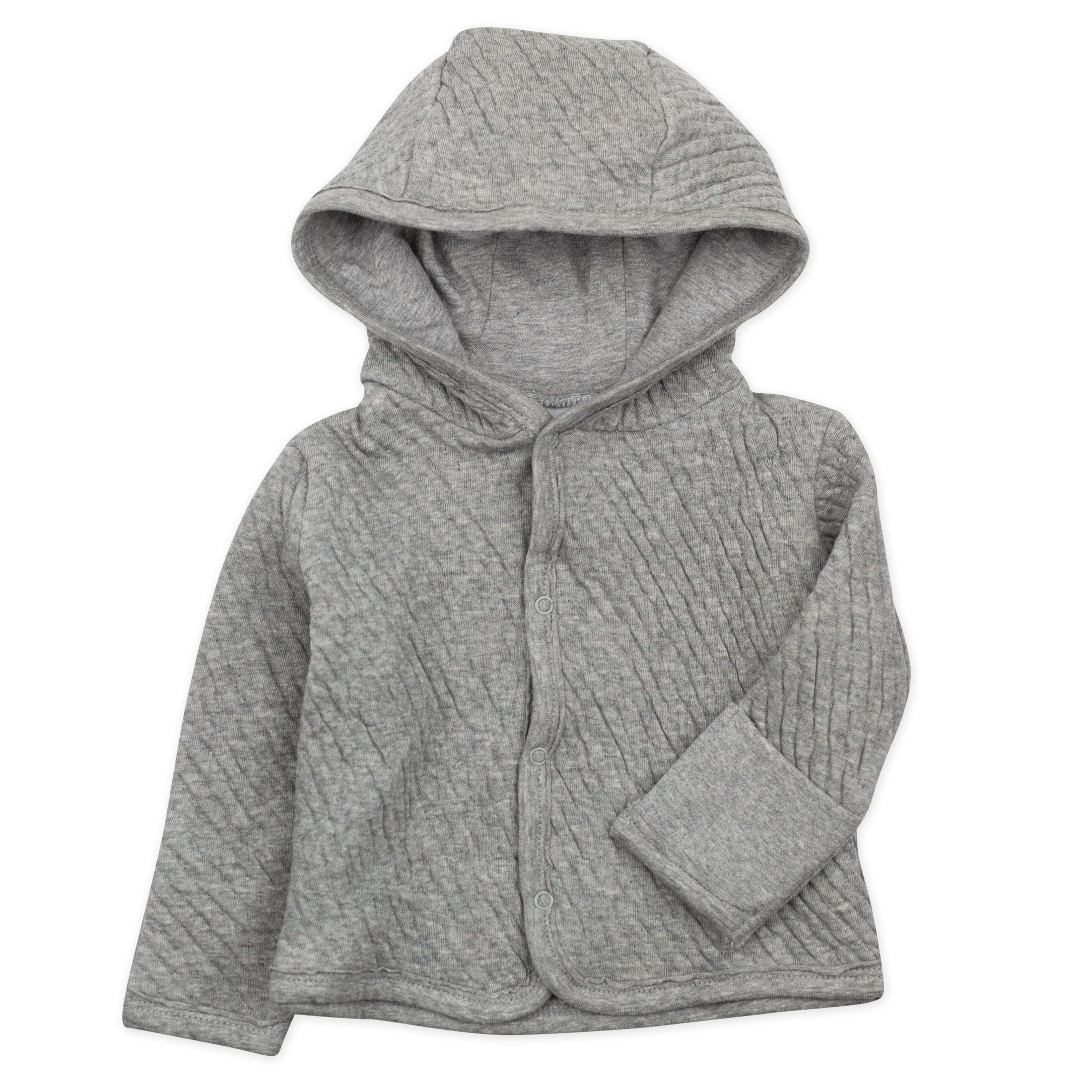 Our snap-front hooded jacket makes the cutest layering piece for every weather. The mini-quilted Matelassé fabric is 100% organic cotton and keeps baby comfy and cozy. This jacket is an adorable must-have!