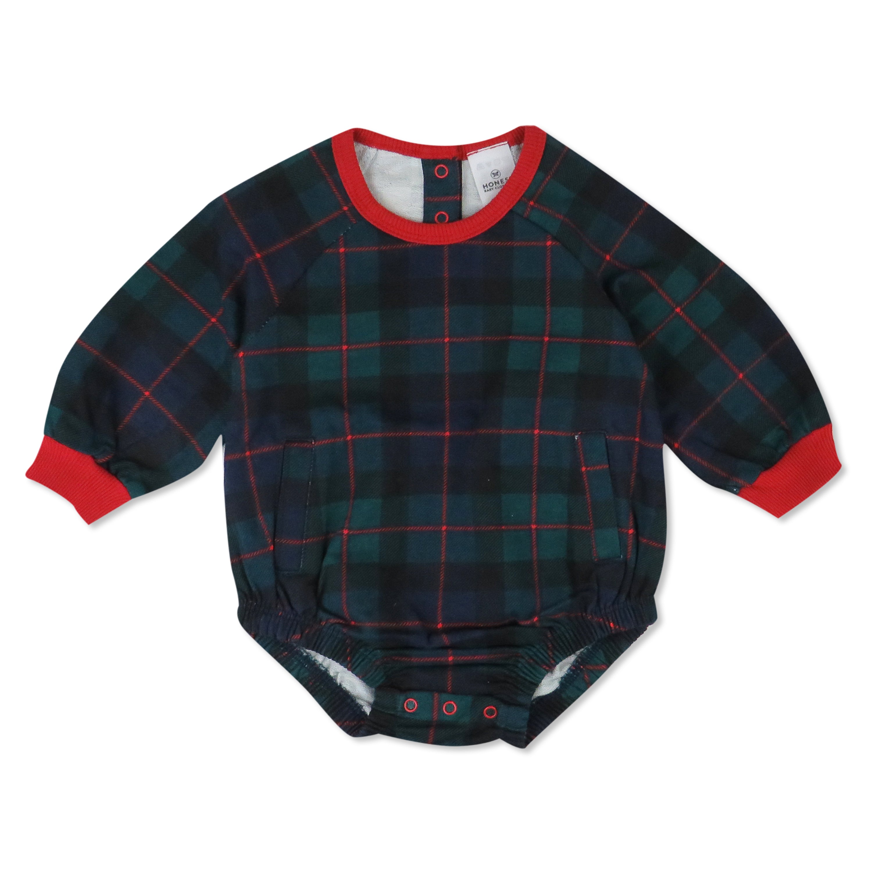 This bubble romper with long sleeves and pocket details is the cutest look for the Holidays. This stylish one-piece outfit is comfy and cozy for baby and easy for parents. Responsibly made from machine washable 100% certified organic cotton, this romper features nickel free snaps on the back and the bottom for easy dressing and quick changes. Available in adorable prints and colors, you'll want more than one. Makes a great baby gift too!