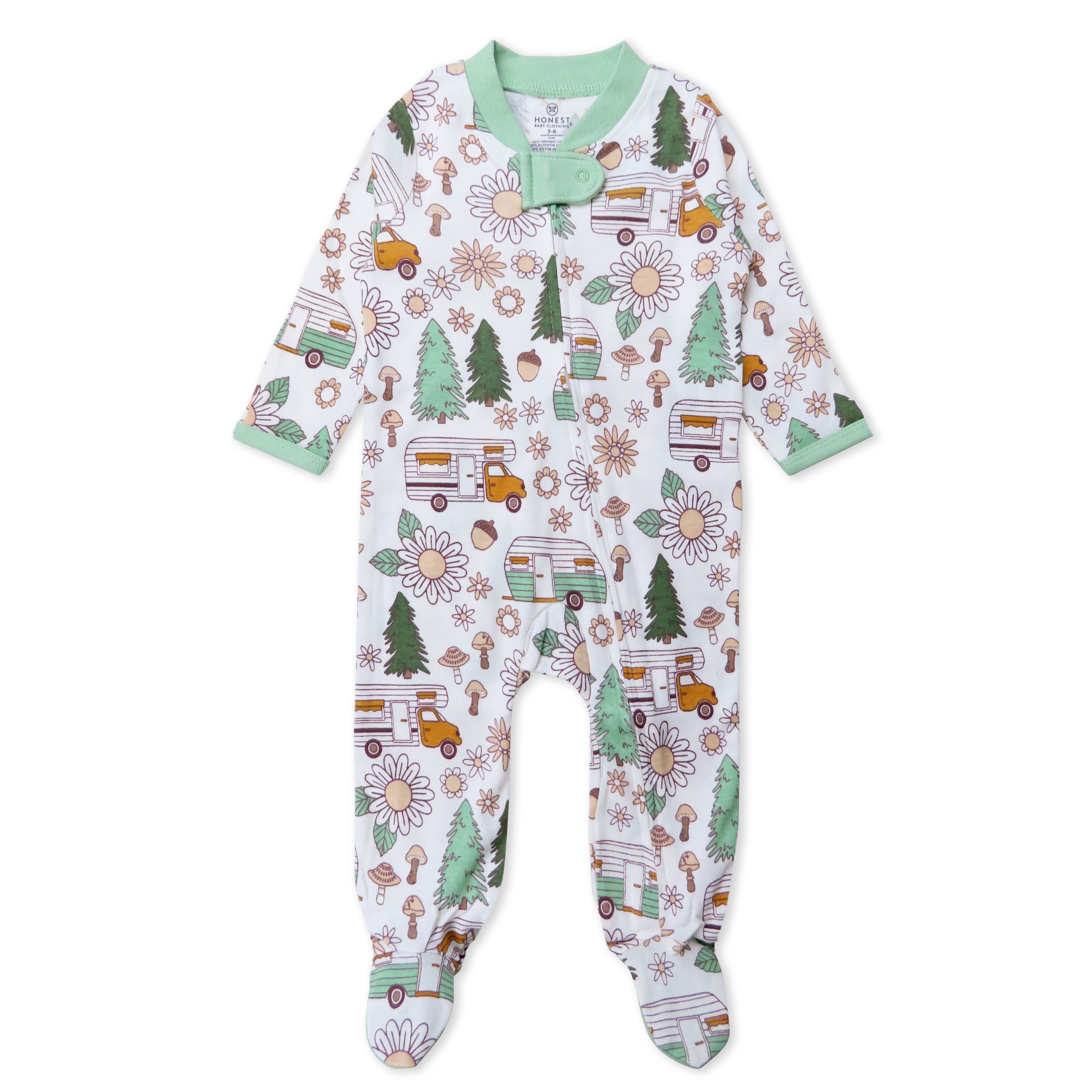 Our sleep & play lives up to its name! This adorable footed sleeper keeps up with baby all day and all night. Friendly features include a zipper front with a tab to protect little chins and fold-over cuffs on the smaller sizes. The full-open zipper makes it easy for those late night diaper changes. 100% soft organic cotton and playful prints make this the perfect one-piece for sleeping, playing, and everything that happens in between. You will want every one of these adorable prints! A registry must-have, this baby pajama makes the best gift for new moms and dads.