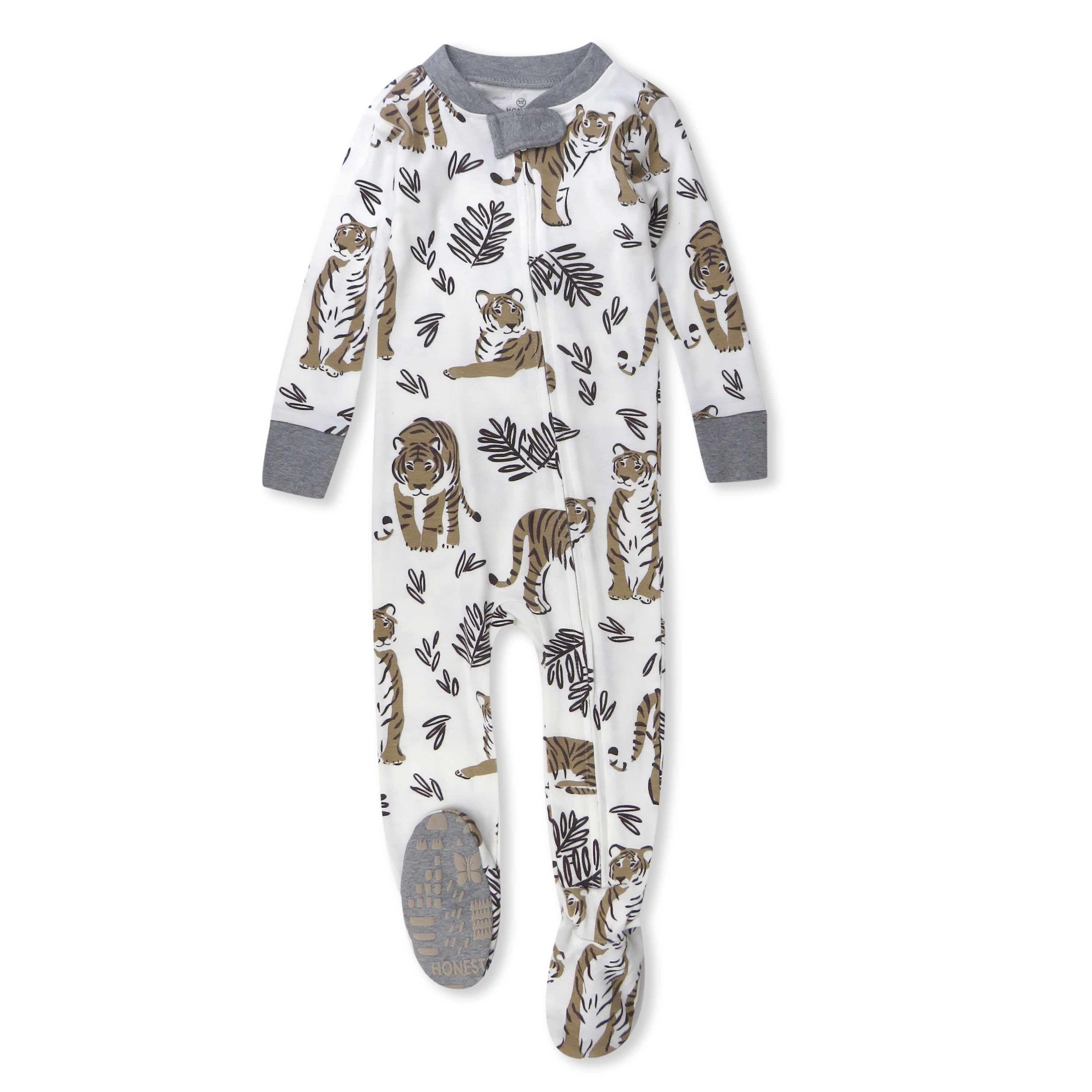 These snug-fit footed pajamas are designed to keep little toes cozy with elastic around the ankle to keep feet in place all night long. Friendly features include a full-open zipper with a tab to protect little chins, and foot grippers in fun Honest prints for early walkers. Soft and cozy 100% organic cotton makes this the perfect one-piece for sleeping, playing, and everything that happens in between.