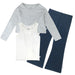 This new 2-piece set including a long sleeve layered top with flare leggings is the cutest look for toddler girls. This outfit is comfy and cozy and easy for dressing. Responsibly made from machine washable certified organic cotton, this stylish tshirt includes a soft tank top with a long sleeve tee on top for a double-decker look. Pair this t-shirt with our pull-on leggings with a unique flare leg opening and elastane for stretch. Available in adorable prints and colors,, this easy outfit is great for everyday play or any occasion.