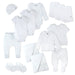 • 3-6 Months pink and white 15-piece baby gift set includes baby clothes and accessories made from soft 100% certified organic cotton